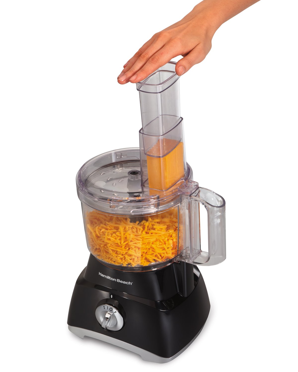 Hamilton Beach Food Processors rely on robust motors to chop, slice, shred, mix and puree just about anything you put in the bowl. In-bowl blade storage and dishwasher-safe parts make these food processors easy to clean and store and some models offer special conveniences like reversible slicing and shredding discs and continuous feed chutes.